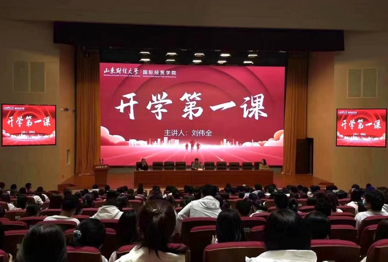 最后,刘伟全副院长为全体新生进行了“开学第一课”的专业教育。刘院长结合学院各专业的培养方案和课程设置,详细解读了外贸从业人员职业道德十六字规范:一心为国、公私分明、团结协作、积极进取;勉励同学们大学期间要“学知识练本领、交朋友结友谊、走正路行大道”,成为既掌握宏观经济知识,又熟悉英语通晓国际规则,具有国际视野、家国情怀的国际化创新型人才。