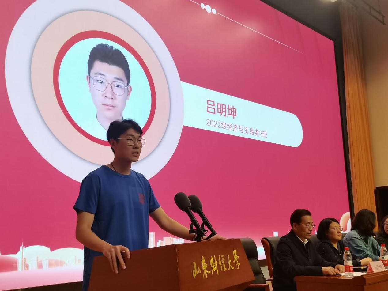 随后,2021级学生代表王艺乐和2022级新生代表吕明坤分别发言,表示作为新的财大国贸人,将好好珍惜大学时光,提升个人的综合素质,树立新时代青年的理想与信念,主动扛起时代赋予的责任和担当。