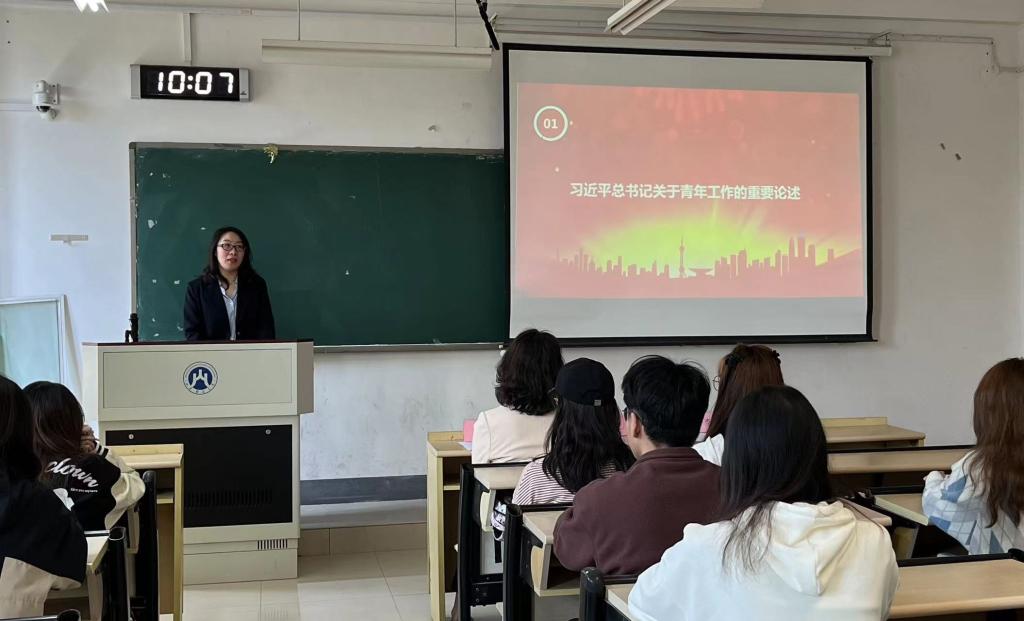 团务部楚昊冉同学向大家分享了习近平总书记关于青年工作的重要论述。习总书记的这一系列重要论述,思想深刻,详尽阐明了新形势下青年工作的重大理论和实践问题,指明了当代青年的历史使命和成长道路。