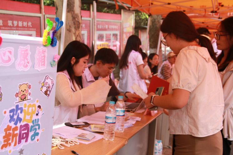 在迎新现场,陆续到达的新同学们受到学长学姐们的热情迎接,感受到学院大家庭的温暖。迎新现场,虽然已是9月,但天气依旧炎热,而志愿者们不惧炎热的天气,有条不紊地帮助新生办理入学手续。他们有的在迎新点处统计基本信息、发放新生礼包,有的帮助新生将行李运往宿舍,用心周到的服务让新同学们倍感亲切。学院特意为新生准备了“时光邮筒”“心愿箱”,引导新同学在迎新现场写下自己的美好心愿。另外,迎新点附近的展板则为新生们详细地介绍了蜜桃视频概况