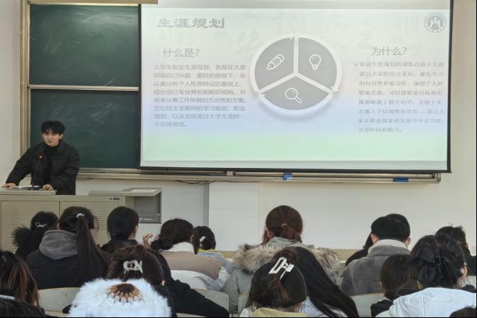 滑高征从什么是大学生职业生涯规划,做好职业生涯规划有什么重要意义、职业生涯规划的四条道路选择以及如何在大学期间如何全方位提升自我分享了经验。并通过案例讲解和问答交流,引导学生全方位的了解自己,认清自己的兴趣、爱好和能力,从而加深对职业生涯规划的认识和了解。