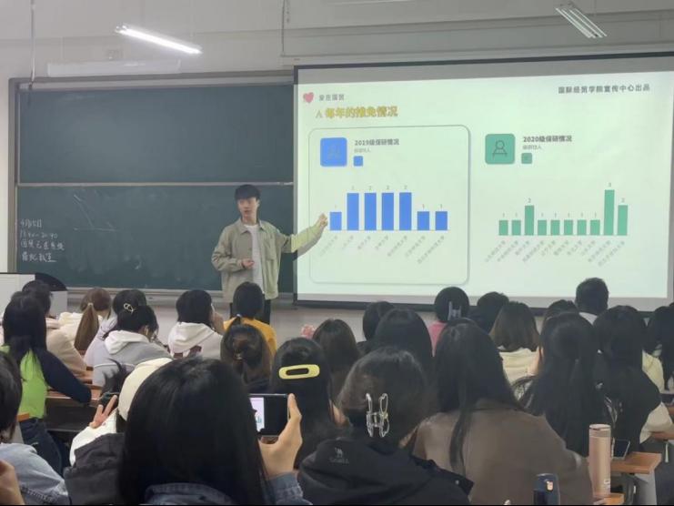 在圣井校区举办了以“国贸考研大数据”为主题的考研经验分享会,本次活动由学院2023届毕业班辅导员主讲。