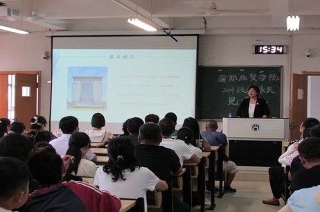 紧接着,郝秀峰书记向家长们介绍了新生辅导员以及学院学生具体工作情况,帮助家长了解学院的文化活动、考研就业以及学生组织架构和功能等信息,鼓励学生主动积极地与教师、班主任、辅导员交流,培养自主解决疑难问题的能力。