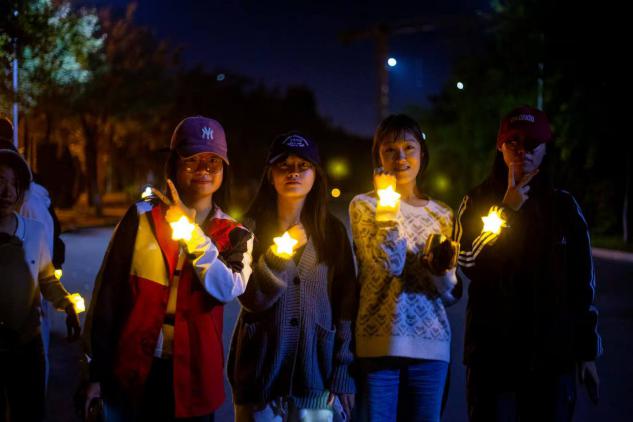 本次活动的形式是学生自愿结队并以团队的形式完成校园任务点的打卡集章。跑步期间,学生手持象征萤火的星星灯和精美的明信片,前往校内各任务地点打卡,手戴星星灯的同学们像流淌在地上的星河将校园各处连接在一起。在感受打卡集章乐趣的同时,同学们也积累了阳光校园跑的次数与里程。在任务打卡点,志愿者如同灯塔般的指引者,手持荧光棒并提供“月亮灯”、饮品等礼物,为同学们补充能量,营造出满满的氛围感。