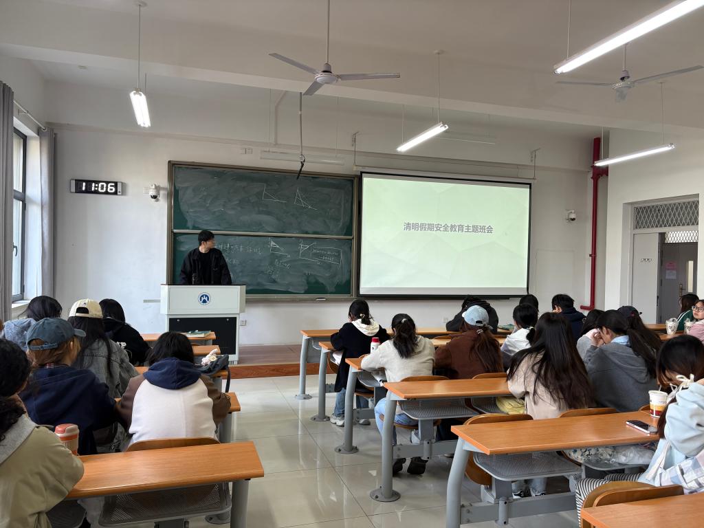 主题班会围绕清明节假期安全问题,重点包含防溺水、防交通事故、防出游风险、防火灾、防诈骗、防自然灾害等内容。班会上,辅导员教育学生要自觉遵纪守法,遵守社会道德规范;要注意人身财产安全,防范电信诈骗,防止进入传销窝点;要遵守交通规则,注意饮食安全与卫生,严禁酗酒滋事。同时强调,无论是留校还是离校,同学们都要保持通讯畅通,各班要坚决落实好离返校情况统计工作。并提醒离校学生要按时返校,留校学生要严格遵守学校各项管理规定,注意消防安全,合理规划时间,确保度过一个安全、愉快的假期。