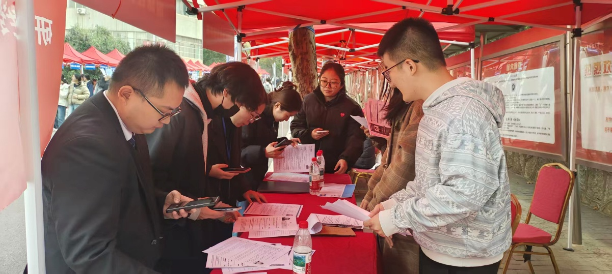 2026届近100名毕业生踊跃参加,学院展位共收集学生简历100余份,并与20余家用人单位进行了深入对接。