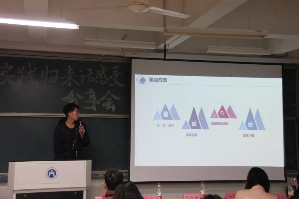 五个团队的团队代表就团队组建、调研课题确立、调研地点选取、实际调研经历、调研报告撰写、调研经验分享等方面进行了详细讲解,展示了自己团队的亮点并与在场同学分享了实践的收获与感悟。更有团队以视频为载体展示调研过程,极大地提高了活动的趣味性和吸引力。