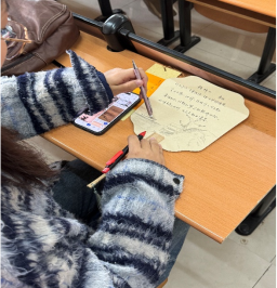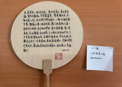 活动由院学生会学术部承办,本次比赛包含两类赛道,硬笔书法和软笔书法。为丰富书写形式,学术部为参赛选手提供了书法扇子和文创书签,选手可选择自己喜欢的句子进行书写。来自各年级的同学踊跃参与。