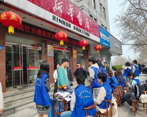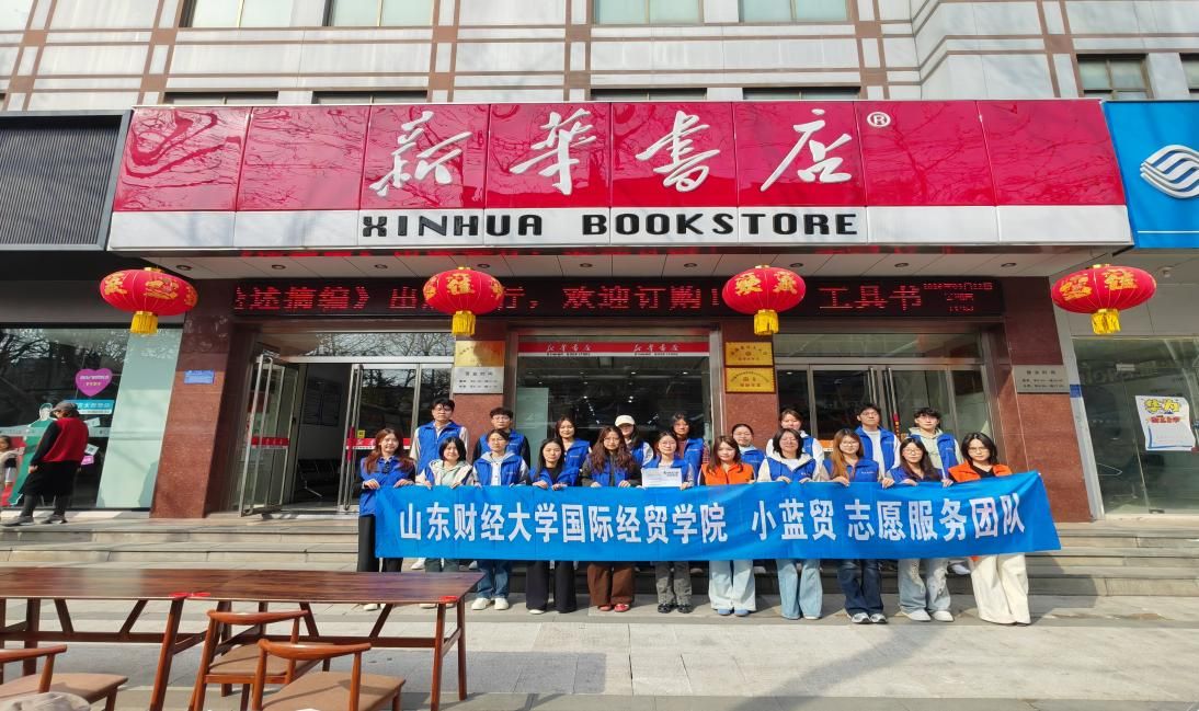 “小蓝贸”志愿服务团队携手章丘新华书店汇泉书店开展黄河流域文化宣传志愿服务活动。本次活动以“书香润黄河,知识传薪火”为主题,通过图书荐读、知识问答等丰富形式,将专业知识与志愿服务相结合,向市民传递黄河文化魅力,践行青年志愿担当。