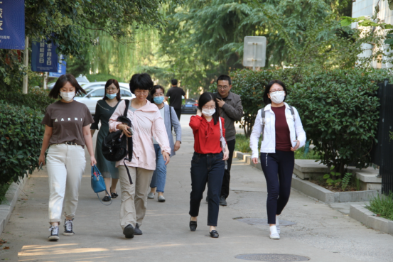 工会组织全体教职工齐聚,参加健身健步走活动。