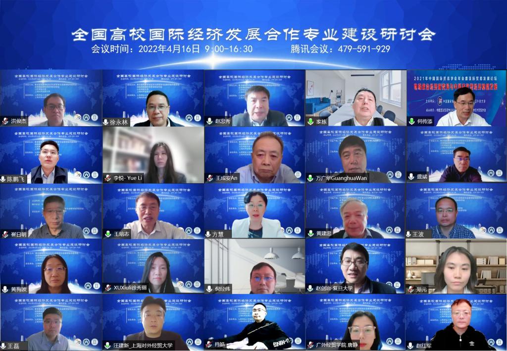 共同承办的全国高校国际经济发展合作专业建设研讨会在线上举行。商务部援外司原副司长、中国世界贸易组织研究会外经贸咨询顾问委员会委员王成安,国家国际发展合作署代表陈鹏飞,亚投行高级经济学家李悦,上海对外经贸大学副校长徐永林,南开大学原副校长佟家栋,广东外语外贸大学副校长何传添,联合国前高级官员、复旦大学世界经济研究所所长万广华等领导专家出席并做演讲。我校校长赵忠秀出席开幕式并致辞。开幕式由对外经济贸易大学副校长洪俊杰主持。