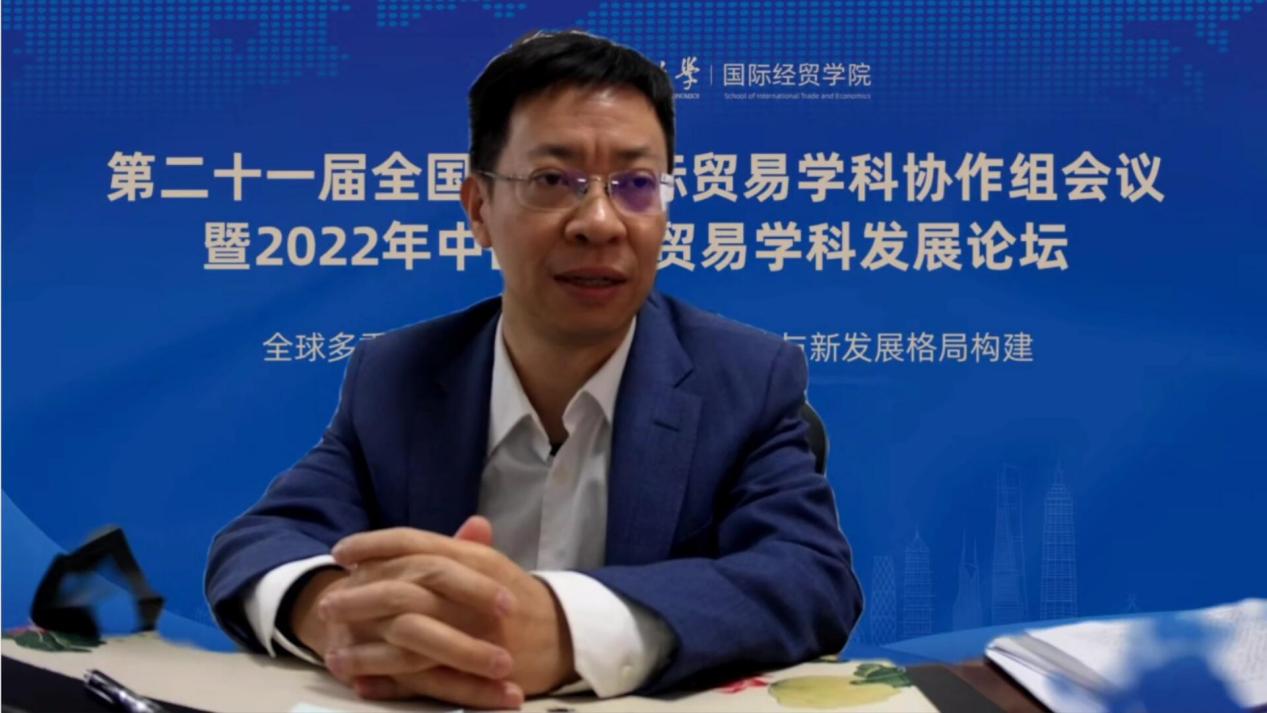 具体承办的第21届全国高校国际贸易学科协作组会议暨2022年中国国际贸易学科发展论坛线上举行。会议以“全球多重挑战背景下中国高水平开放与新发展格局构建”为主题。