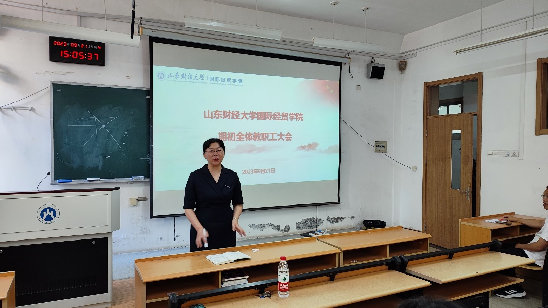新学期第一次全体教职工大会在舜耕校区3号楼109教室顺利召开。学院班子成员及全体教职工参加了会议,会议由院长方慧主持。