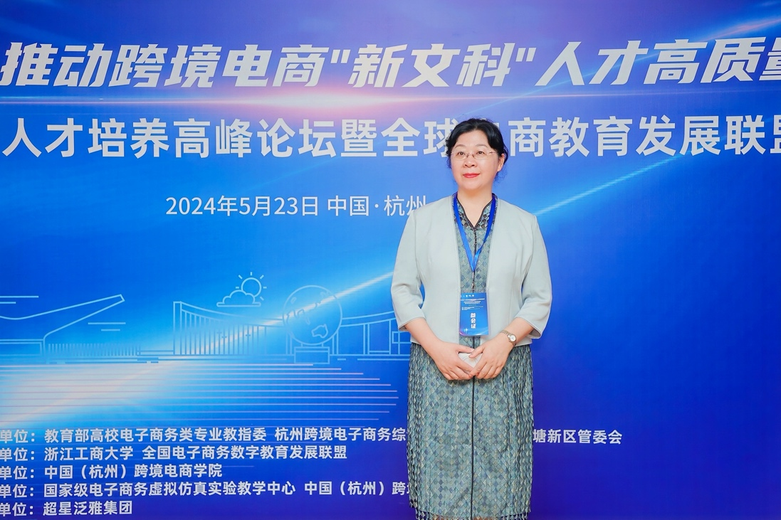2024年5月22-23日,方慧院长应邀出席第四届全国跨境电商人才培养高峰论坛暨全球电商教育发展联盟筹备会议。本次活动以“新质生产力推动跨境电商‘新文科’人才高质量培养”为主题,由教育部高等学校电子商务类专业教学指导委员会指导,浙江工商大学、全国电子商务数字教育发展联盟主办,对外经济贸易大学、东北财经大学、广东财经大学等多所高校的教师代表、政府代表、企业代表等参加了本次活动。