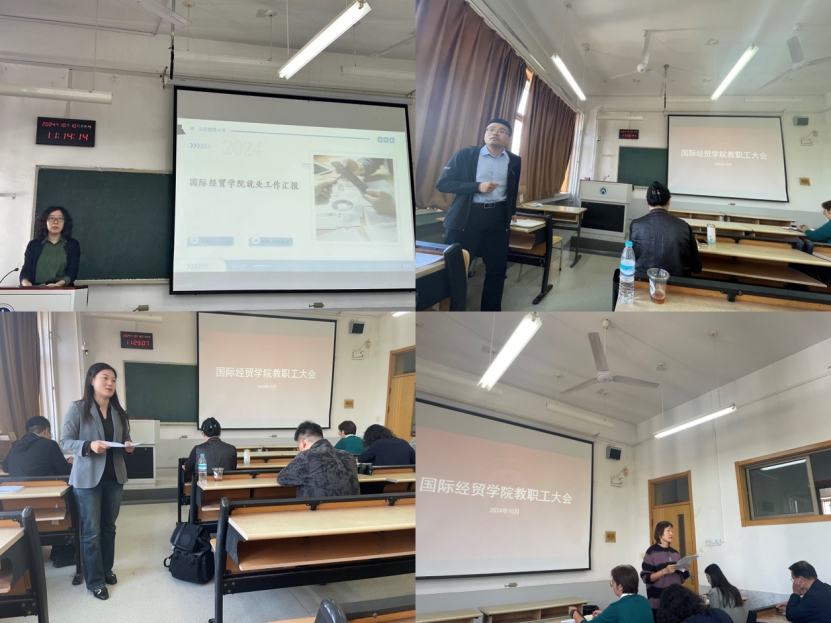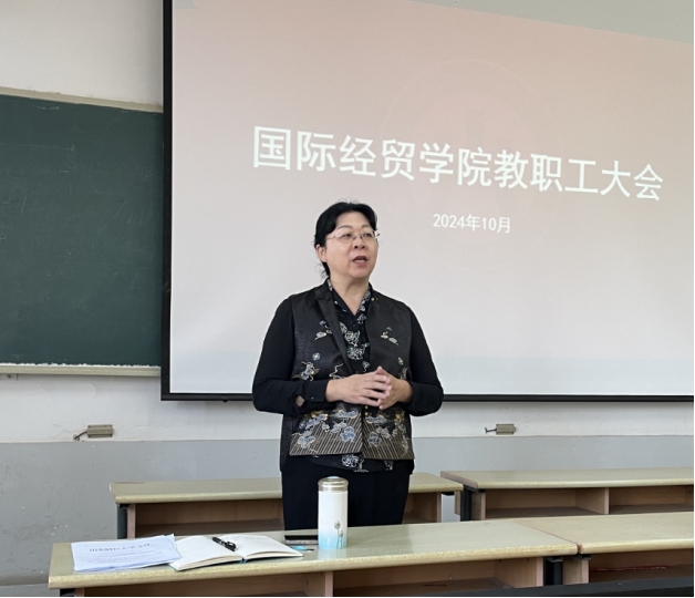 随后,分管院领导就各自分工做了汇报,王斐斐副书记围绕学院研究生管理、本科生考研和就业选择、校友座谈会组织等内容进行了工作汇报。院长助理王磊介绍了本学期本科教学方面的主要工作,着重强调了教改项目申报、课堂学风建设等内容,并传达了学校近期开展的资产清查任务的相关要求。院长助理邬彩霞总结了近期学院科研工作和学科建设工作的执行情况,包括学校在横向课题建设支持方面的新举措,并对学院进入本年度所取得的科研成果进行了汇报。院长助理段国蕊介绍了研究生教学管理各项工作执行情况,着重强调了学校下一步将在研究生导师指导资格确认方面颁布的新文件要求,此外还汇报了学院2024级国际商务硕士数字贸易实验班建设等工作的推进情况。