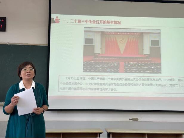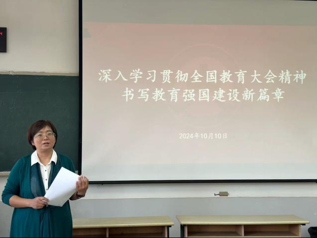 学院党委书记崔东峰围绕党的二十届三中全会精神开展宣讲,并结合学习全国教育大会精神,带领全院教职工开展政治理论学习。她指出全体教职工要以提高教师思想政治素养、师德师风水平和育德育人能力为工作核心,在日常教学与科研工作中,要加强师德师风建设,提升教学质量,培养更多符合时代需求的高素质人才。同时,要积极探索创新,积极参与到学院的各项建设中,为学院的持续发展贡献力量,共同推动学院教育事业迈上新台阶。
