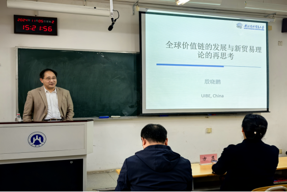 讲座中,殷晓鹏教授以新贸易理论和全球价值链的发展为切入点,通过丰富的文献、详实的数据和案例,全面回顾了国际经贸理论的发展和全球价值链的演变,并结合当前国际经济形势,系统分析了全球价值链在现代经济中的核心作用和新贸易理论对现实的解释。他的讲座深入浅出,生动有趣,开拓了同学们的国际视野,激发了学术热情。