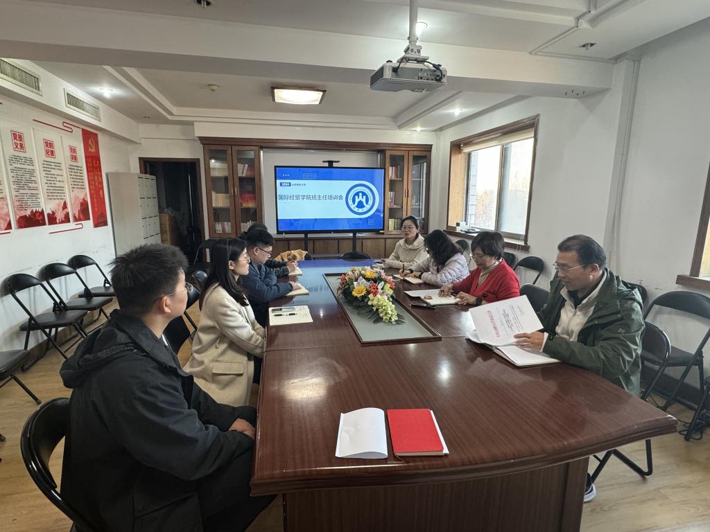 班主任管理办法(试行)》并指出班主任是高校教师队伍的重要组成部分,是开展大学生思想政治教育的骨干力量之一,承担着班风学风建设、学生发展等相关工作,与辅导员协同合作,应对和处置各类突发事件。随后,辅导员介绍了相关班级的情况以及学生整体特点,分享了学生管理工作的经验和收获。最后,崔东峰对老师们积极参与班主任工作表示感谢,并提出三点要求:一是坚定立德树人,用情用心做好班主任的各项工作;二是加强团结协作,与辅导员双向融合强化育人效果;三是发挥专业优势,在学风建设、学科竞赛、考研就业等方面助力学生成长成才。