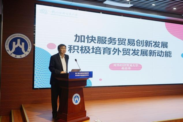在主旨演讲第一阶段,对外经济贸易大学校长赵忠秀做了题为“加快服务贸易创新发展,积极培育外贸发展新动能”的主旨报告。他指出,我国服务贸易面临内部结构调整和外部形势变化等风险挑战,提出制造业服务化、数字与绿色服务贸易等六大发力点,并建议制度开放与平台建设,为创新发展指明方向。