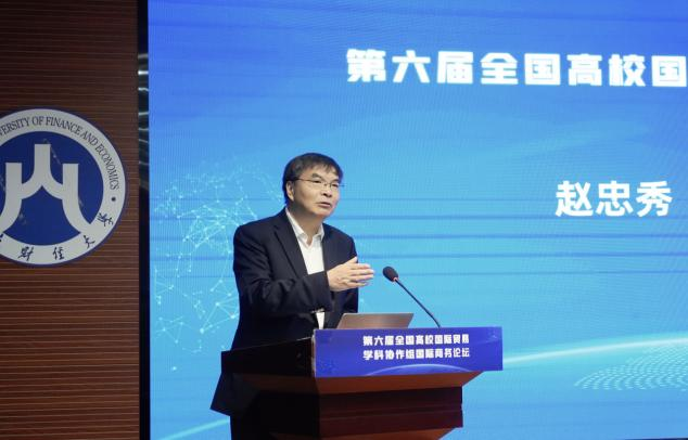 对外经济贸易大学校长、全国高校国际贸易学科协作组副秘书长赵忠秀致辞,祝贺论坛召开,感谢蜜桃视频