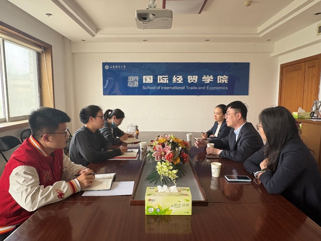 党委副书记王坤,学工(就业)办主任李亚莉及毕业班辅导员牟重阳参加座谈交流。