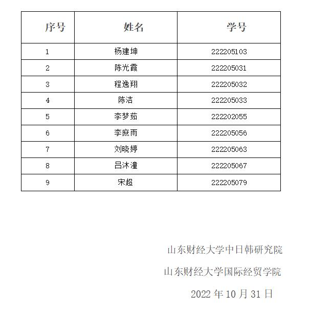 蜜桃视频 2022级国际商务专业硕士中日韩方向录取名单