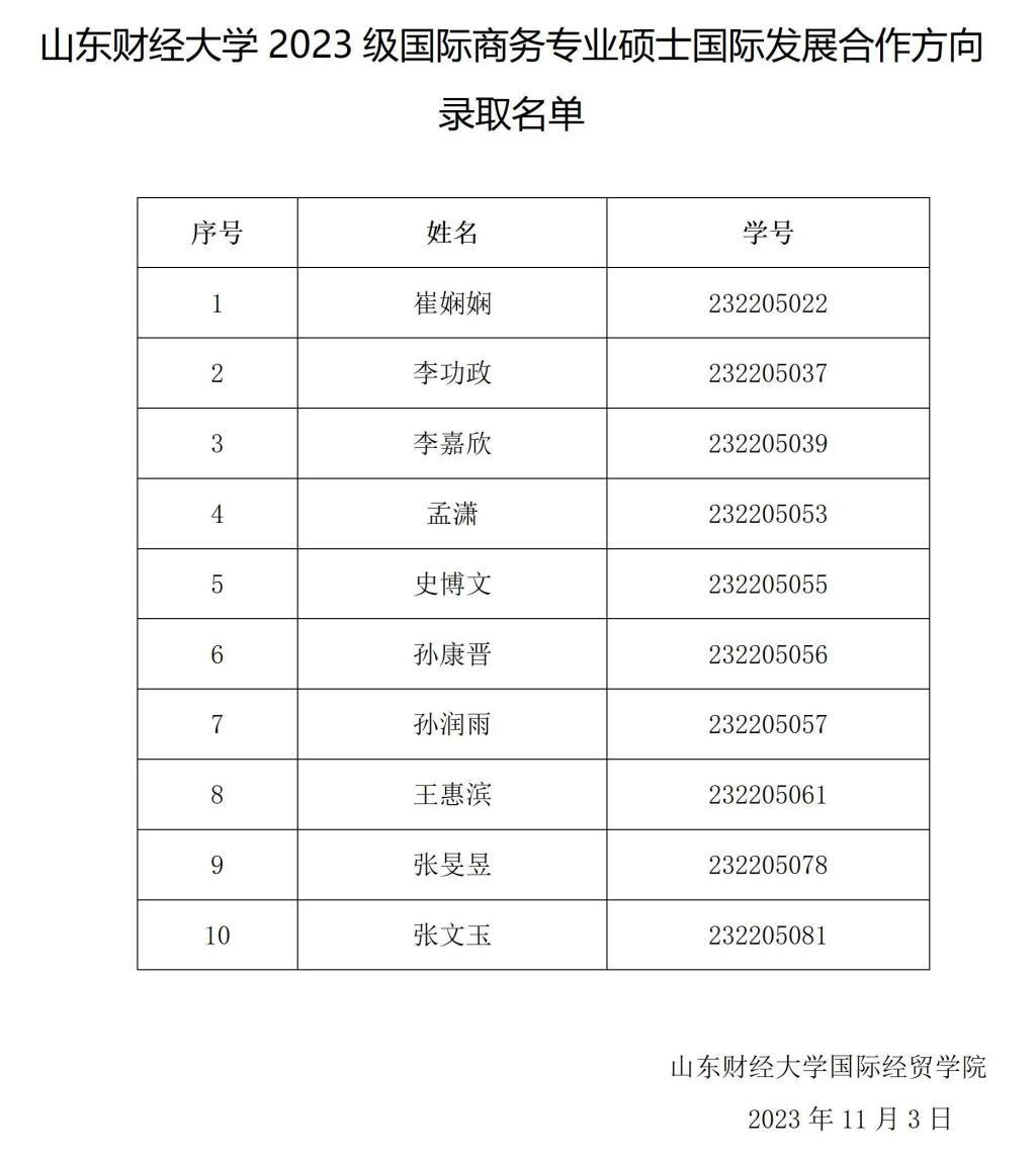 蜜桃视频 2023级国际商务专业硕士国际发展合方向录取名单