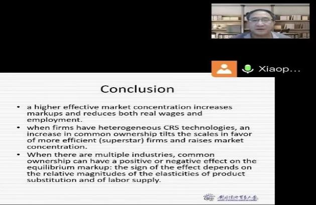 殷晓鹏教授以其在专业领域长期积累的科研成果和教学经验,向博士研究生悉心传授了国际贸易理论研究的最新进展以及全球价值链(GVC)的前沿理论和测算框架。我校30多名博士生参加线上课程,同学们纷纷表示殷教授对前沿理论深入浅出的独到解读、风趣生动的授课风格以及专业流利的英文讲述,有效解决了学习和研究中的一些困惑,拓展了专业研究边界。通过学习,同学们不仅对学术前沿问题有了更深刻的理解,也提高了英语交流和表达能力。