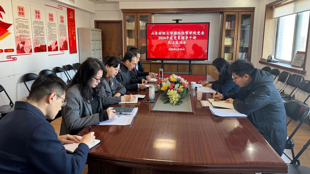 2024年度党委领导班子民主生活会在舜耕校区办公楼5楼会议室召开。由校机关党委书记、党委组织部副部长付亚、党政办公室正科级干部朱海林组成的指导组到会指导。学院党委书记刘波主持会议,党委领导班子成员参加会议。