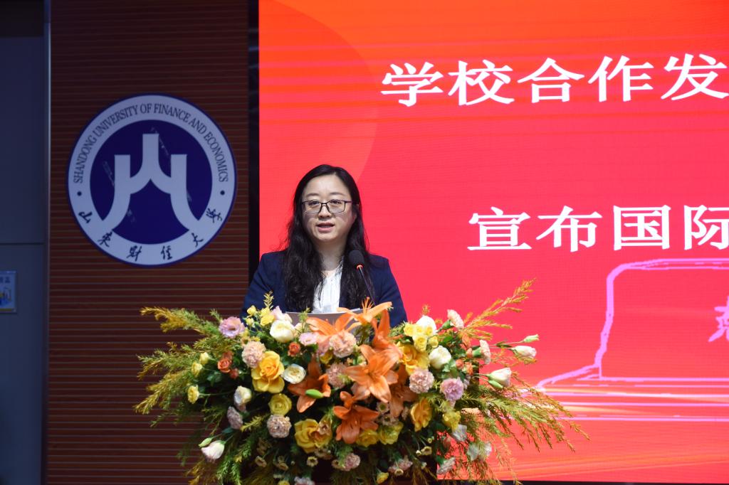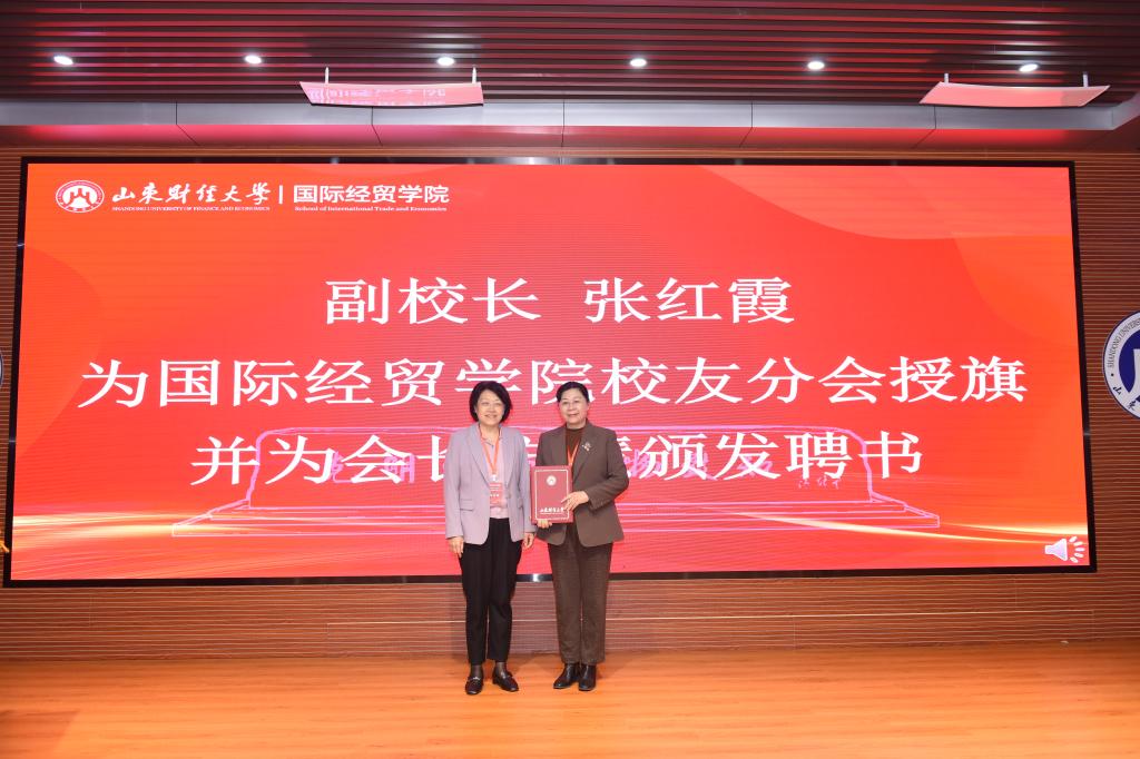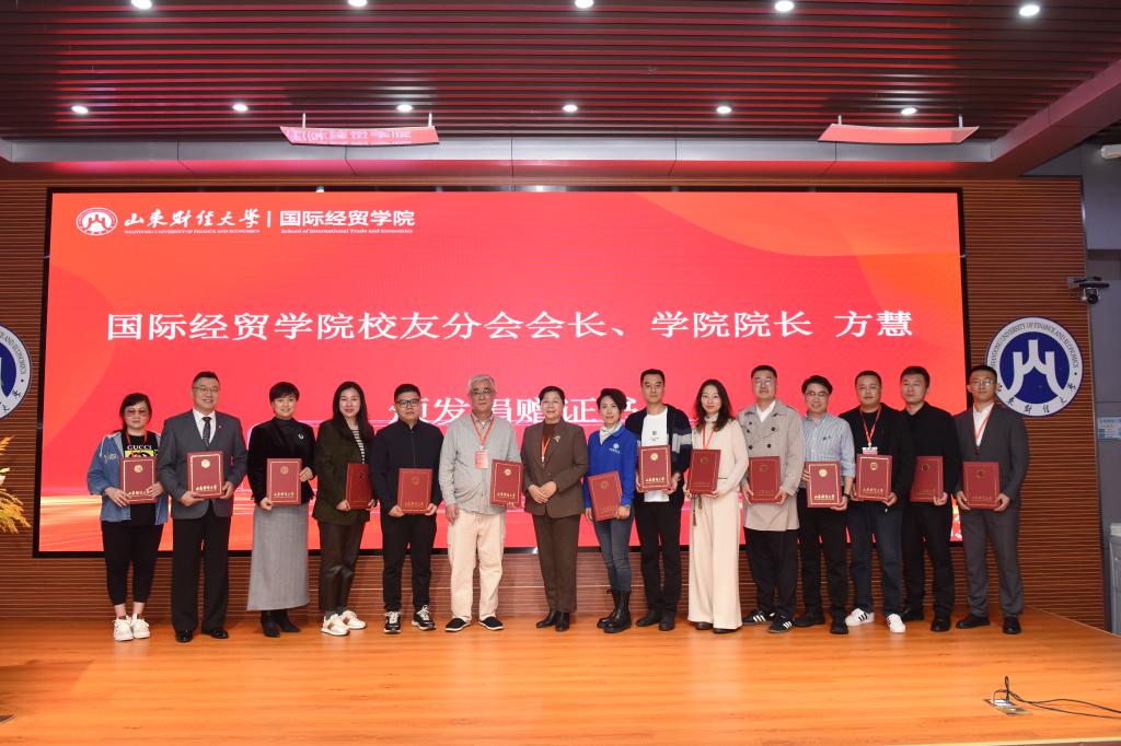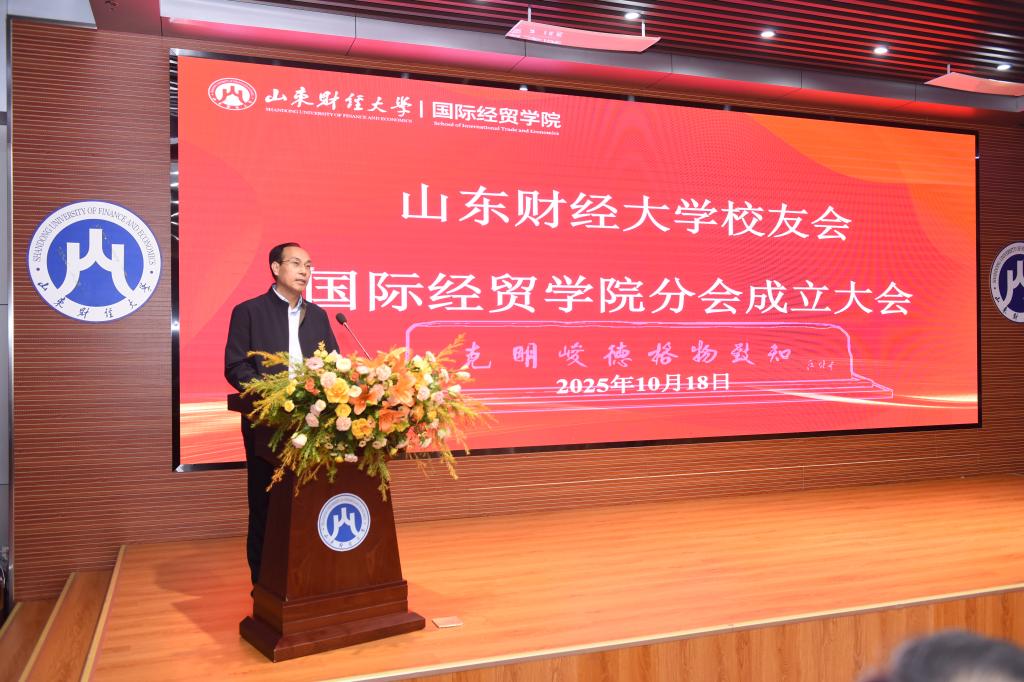 薪火相传六十余载,培养了大批扎根祖国大地、驰骋世界各地的优秀校友,以卓越业绩为母校赢得广泛赞誉。校友是学校最宝贵的财富,更是学校发展最可信赖的力量。分会的成立标志着学校“校院两级、纵横联动”校友工作体系再添新力。她向学院校友分会提出四点期望:一是当好情感联结的“连心桥”,健全联络机制,传承国贸人求真务实、开拓创新的品格;二是当好事业发展的“助推器”,深度融入人才培养、学科建设与产学研合作;三是当好形象展示的“金橱窗”,生动讲述国贸人在“一带一路”等开放前沿的奋斗故事;四是当好服务社会的“立交桥”,充分发挥专业优势,为山东、为全国、为全球开放型经济贡献国贸力量。