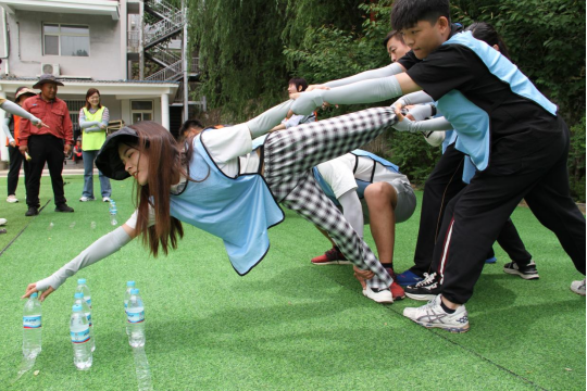 此次主题党日活动以素质拓展的形式开展。师生们分成了三队齐心协力、相互合作,共同挑战了“跨越雷区”“团队接龙”“摸石过河”“轨道传输”“爬雪山过草地”五个项目。其中“爬雪山过雪地”由团队队员共同拉起长征版图,相互配合“走”完地图中显示的长征路,过程中掌声与呐喊声此起彼伏,响彻全场……面对一个个富有挑战、寓意深刻的活动环节,师生党员迎难而上、积极参与、齐心协力、相互帮助,圆满完成了拓展训练的每一项任务,既丰富了党史知识、增强了党性修养,也让大家的团队协作和应变能力得到了提升和锻炼。